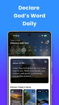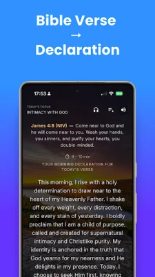 Declare Bible wata manhaja ce da aka kirkiro don farfado da bangaskiyarka da kuma karfafa tafiyarka da Allah. Tana tattara furcin nassosi masu karfi, tunani na yau da kullum, da kuma wahayi na annabci a wuri guda, mai tsarki da aka tsara da kyau. Ba kawai manhaja bace; madakata ce ta yau da kullum, tsarin ruhaniyarka, da kuma tafiyarka ta sirri tare da Kalmar Allah da aka rayar. Ko kana fara ranarka da addu'a, neman haske cikin rudani, ko hutawa cikin kasancewar Allah da daddare, Declare Bible ce abokiyar tafiyarka. Tana ba ka damar furta kalamai masu karfi daga kowace ayar Littafi Mai Tsarki, tana mai sa Maganar Allah ta rayu ta hanyar sauti.